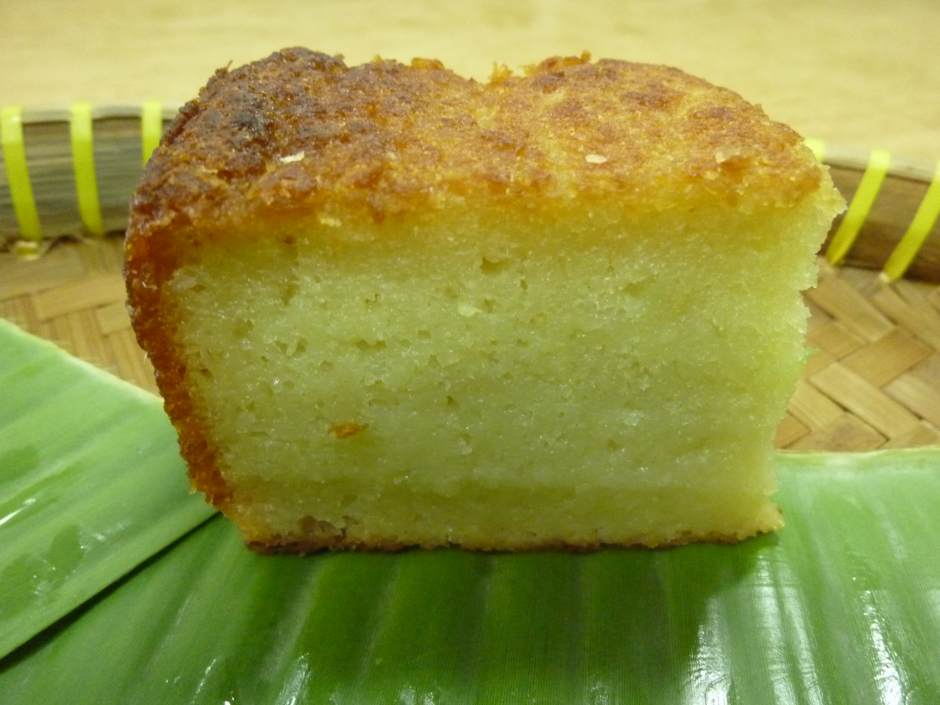 Glutinous rice coated with grated coconut and topped with gula Melaka