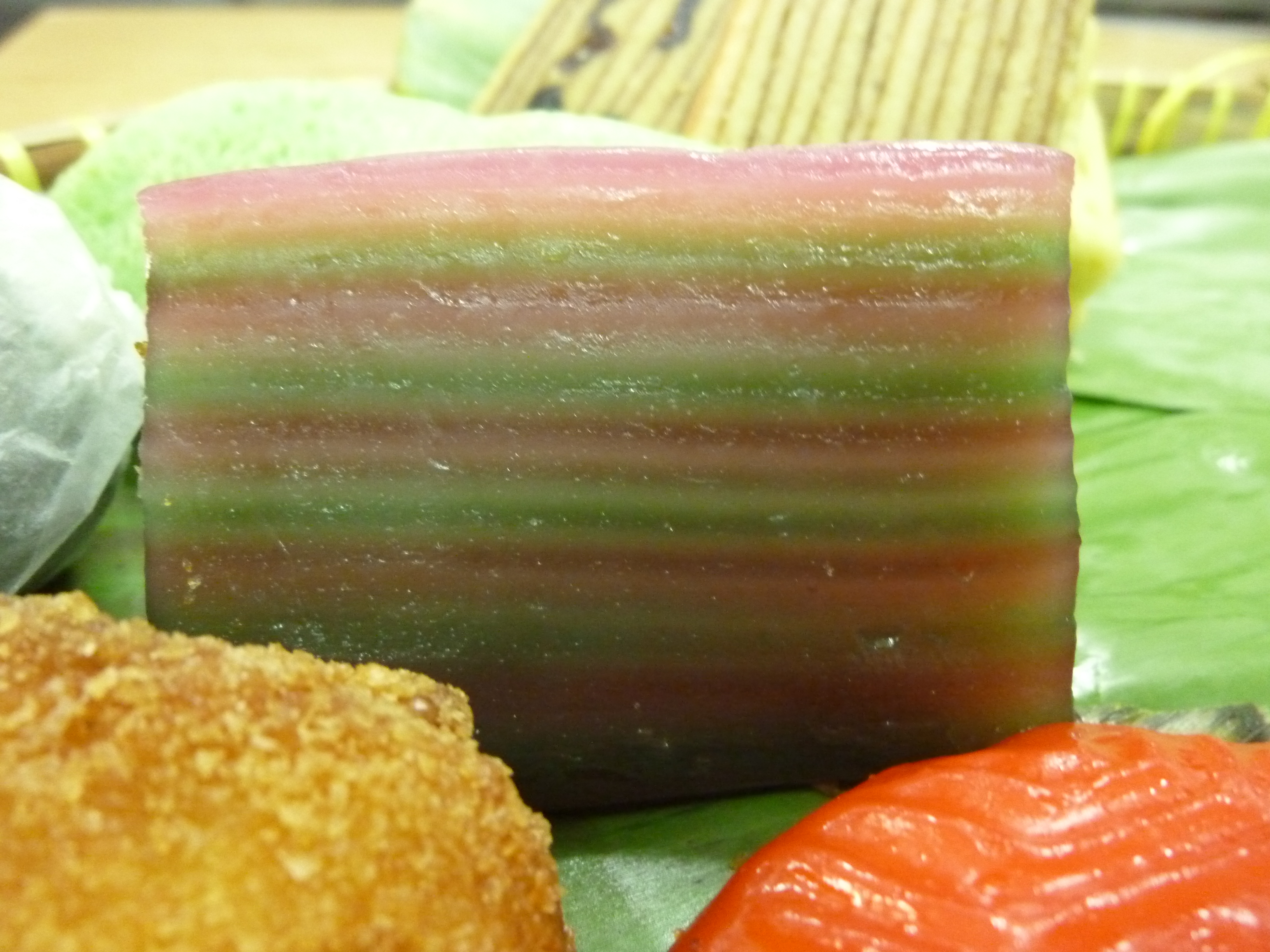 Multi-coloured layered cake with a chewy texture (九层糕)